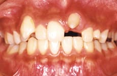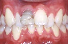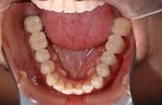 歯の変色に加え、歯周病や、著しい歯列不正が見られます。
