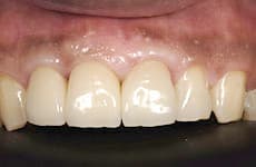 歯肉の処置を行い、左右の歯の長さを整えました。ジルコニアのブリッジにより審美的に修復できました。