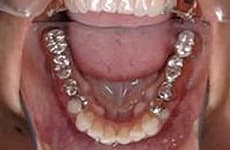 歯列のゆがみがあり、銀色の奥歯で、審美的な問題も非常に大きい状態です。
